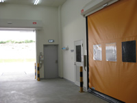 Như một biện pháp đối phó với ô nhiễm do bởi dị vật hoặc côn trùng gây nên, phòng chờ được thiết lập trước khi đến cửa tiếp nhận vật liệu hoặc cửa lối giao hàng. Ngoài ra, nguyên vật liệu sau khi đi qua buồng thổi không khí làm sạch bui bẩn, người phụ trách phòng sản xuất sẽ tiếp nhận.
